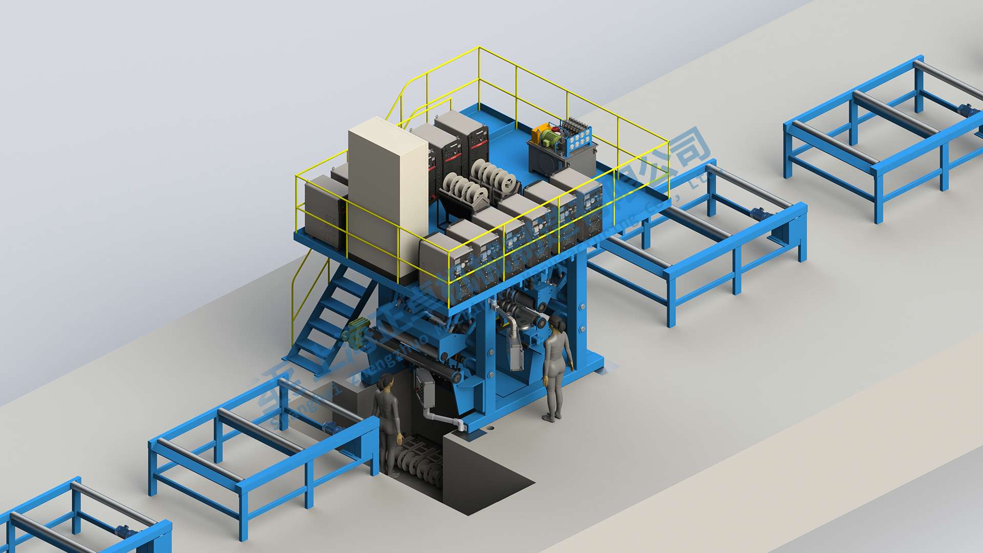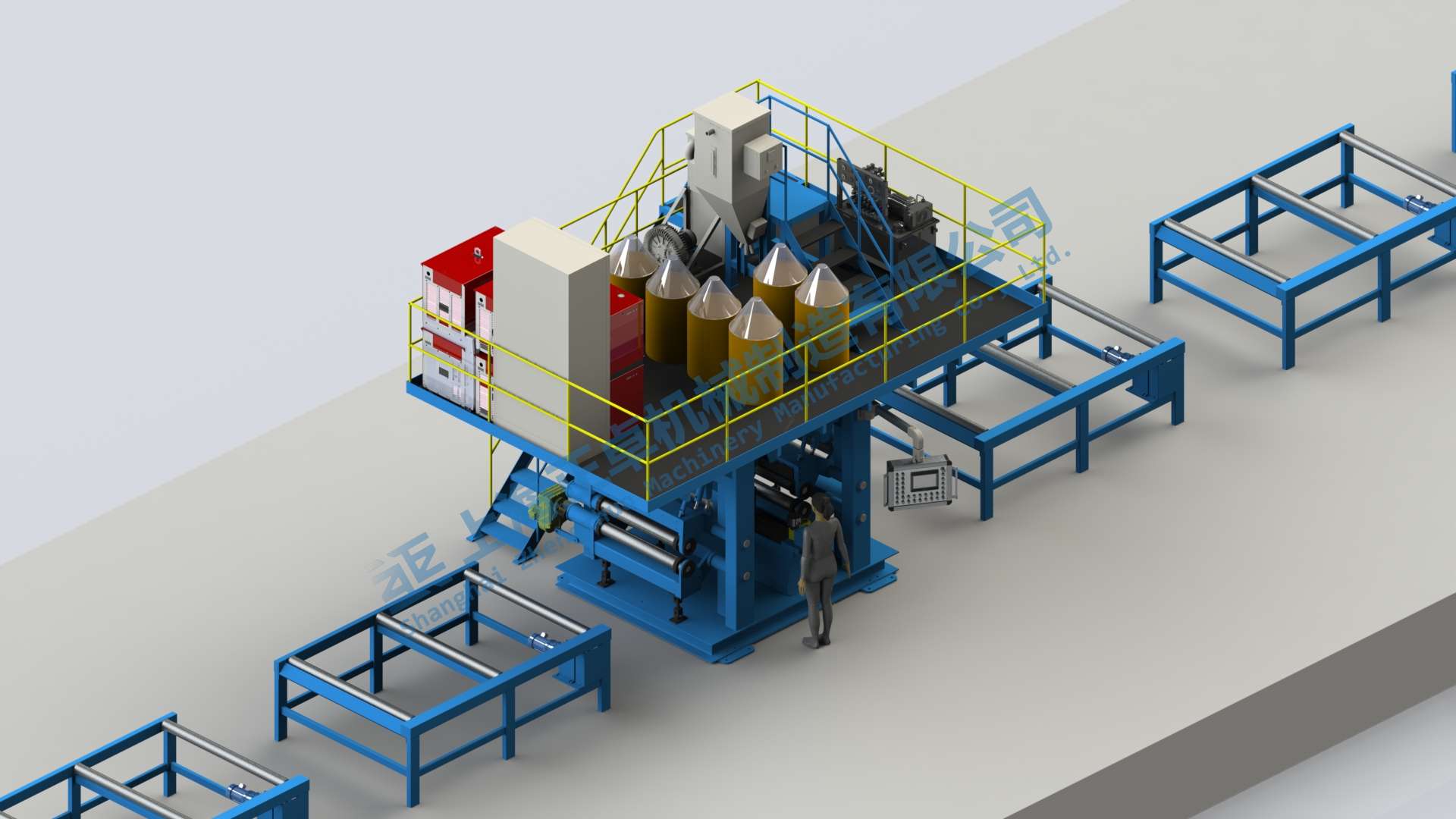 將精整過的扁鋼和拋光后的管子焊接成膜式壁管排的專用設備。